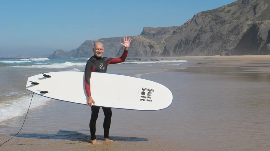 Michael and Marta provide a truly warm welcome to the beautiful SW tip of Portugal. Michael is passionate about offering the best experience and learning he possibly can to everyone in the class. The yoga teaching is the most careful and thorough I have experienced and Michael not only teaches exactly how to practise the physical side of yoga, he takes time to help people understand the true meaning and value of inner peace and practical ways to find it in everyday life. During the week you can really see everyone start to relax and take on a healthier glow. The setting for the yoga classes is exceptional with panoramic views over the bay and the hotel is unusually successful in blending luxury and calm. Marta takes real pleasure in helping everyone enjoy it to the full through surfing in azure waters and hiking along spectacular sun-drenched cliff-tops with the ocean crashing beneath. I arrived at Pure Flow Motions with significant back pain that was affecting my enjoyment of everyday life and preventing me doing active sport. Michael took the time to understand my injury and explained which exercises I should focus on. Within 24 hours my pain was fading and I was surfing again. Continuing the yoga and meditation I learned during the week is helping me hugely.